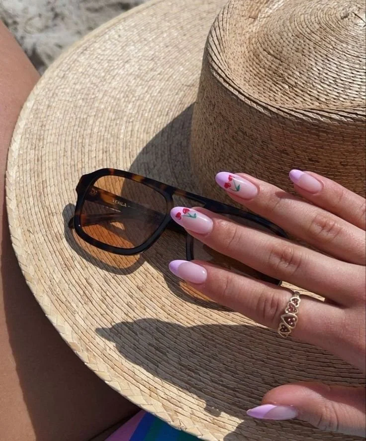 Go for a matte finish in pastel pink or pale peach with hand-painted cherry accents on just a few nails. It’s subtle but still totally on trend.