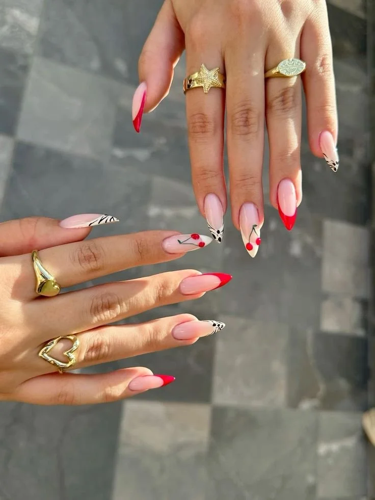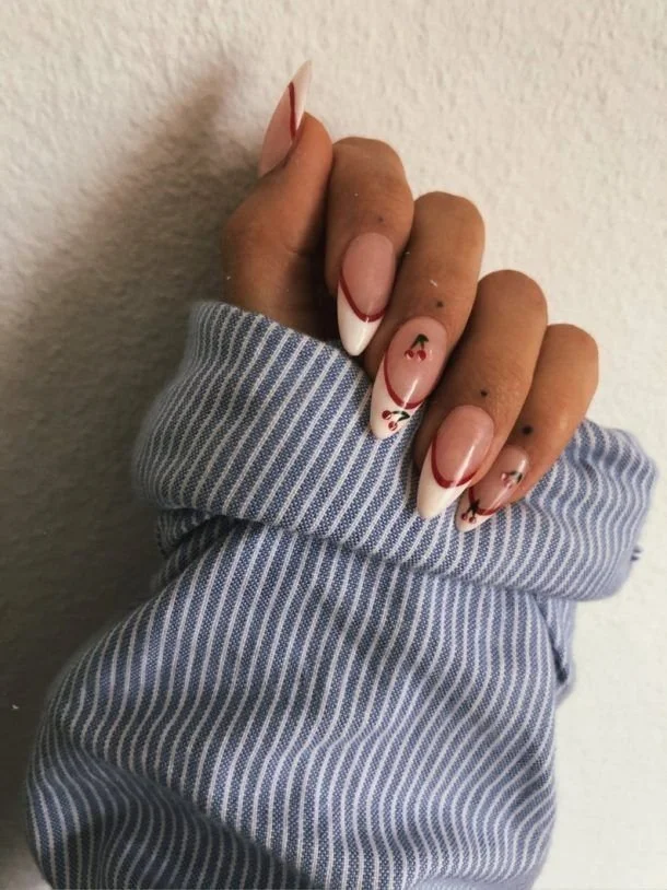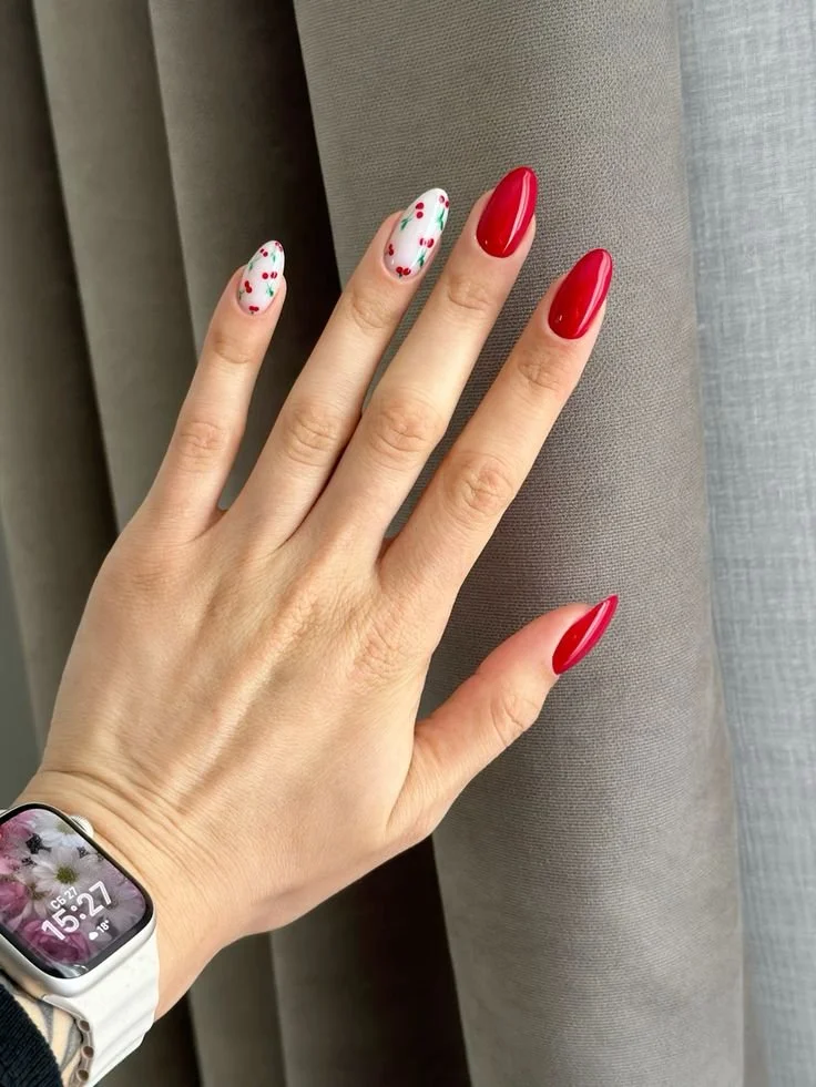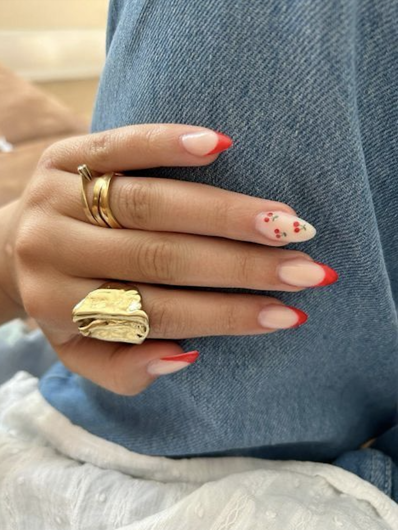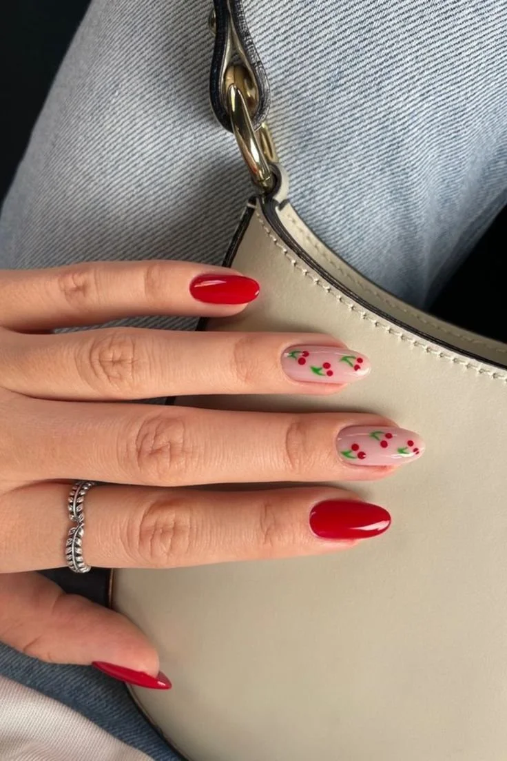 If you like to keep it minimal, try a classic red or soft French mani with one statement cherry nail on each hand. Just enough to be noticed.