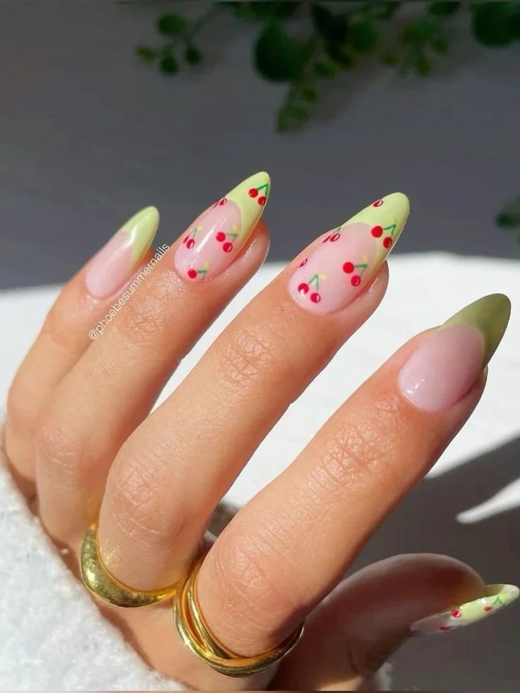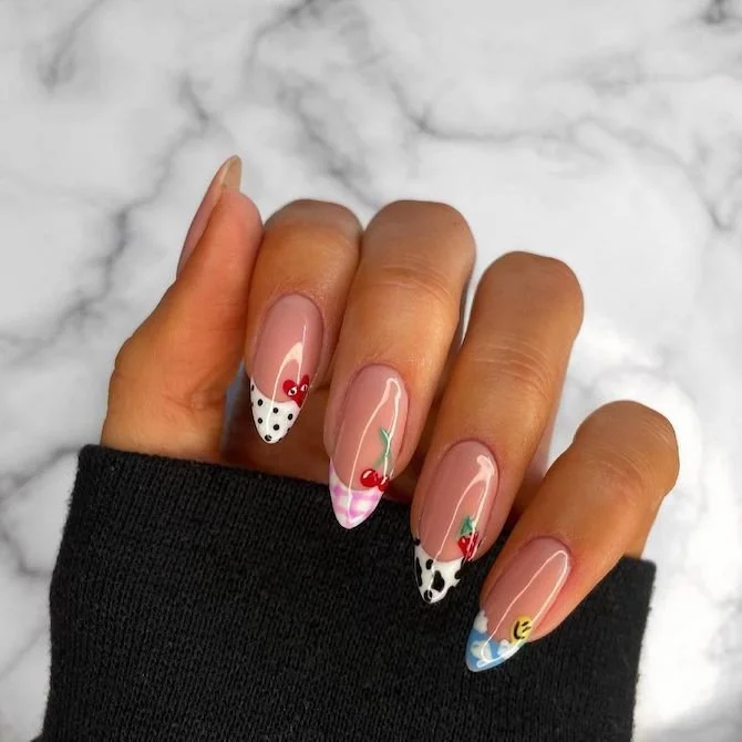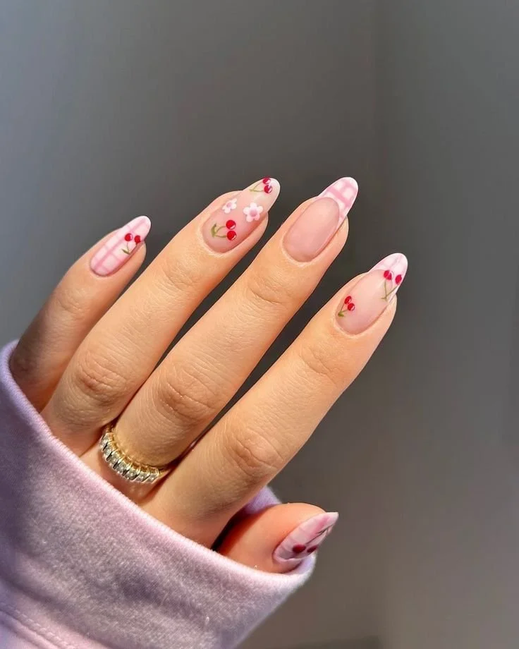 Pair cherry art with gingham nail designs (think red-and-white or pink-and-white) for the ultimate picnic-perfect manicure. It’s playful, summery, and ideal for vacation nails.
